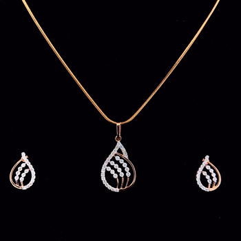 Stylish Jewelry Set đối với phụ nữ & Quà Tặng tùy chỉnh bán buôn thanh lịch Pear Shaped kim cương mặt dây chuyền và bông tai Set trong Rose Gold